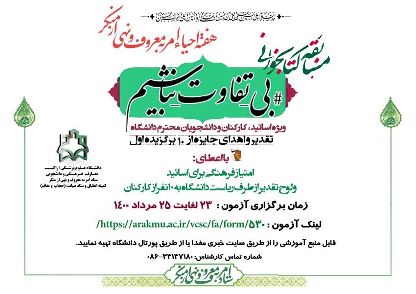 مسابقه کتابخوانی بی تفاوت نباشیم ۲۰ مرداد ۱۴۰۰ | ۰۹:۱۲ کد : ۱۹۲۷۳ اطلاعیه ارسال به دیگران نام شما ایمیل شما ایمیل دریافتکننده ارسال انصراف تعداد بازدید:۲۹۵۴۶ لینک ورود به آزمون