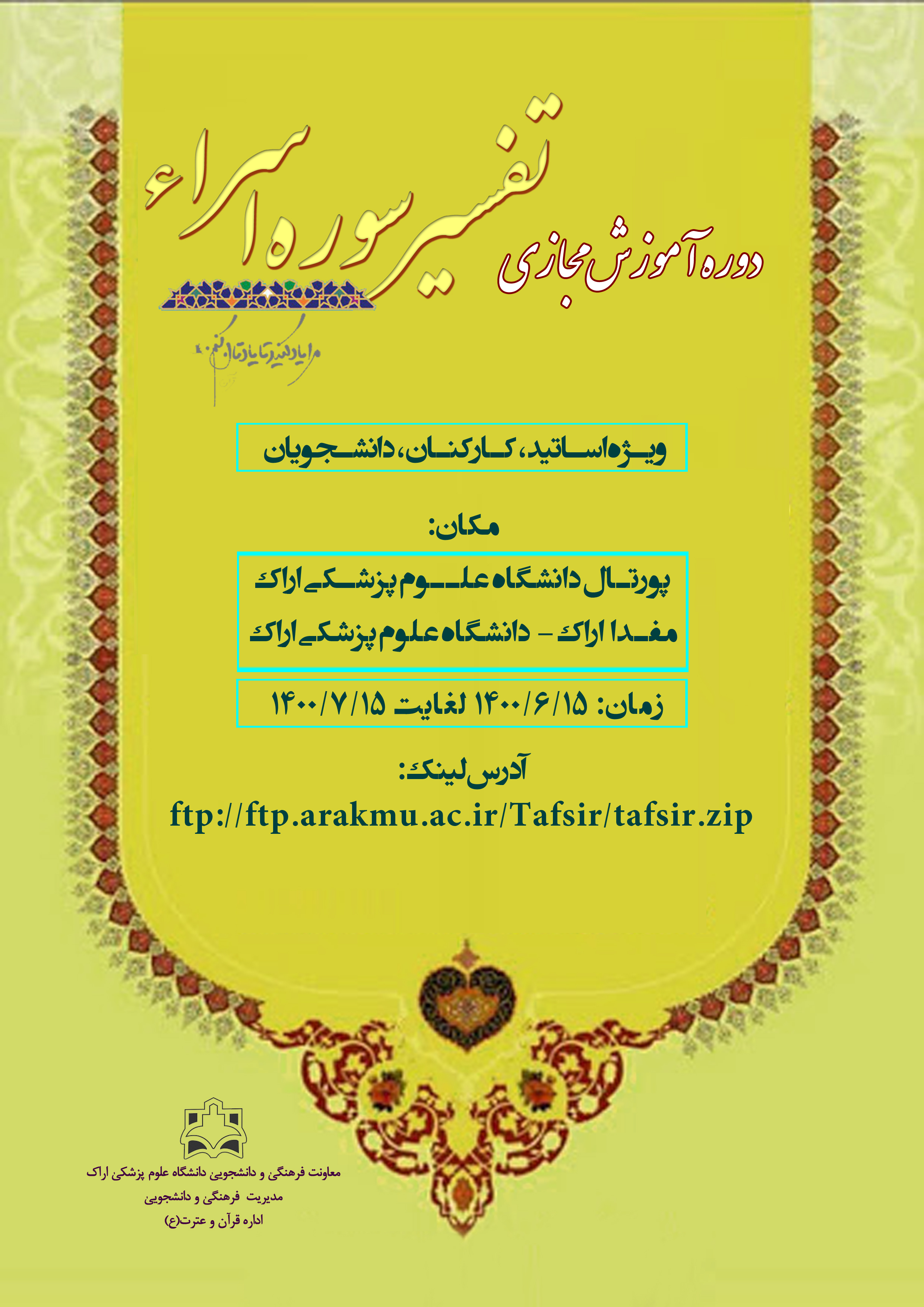 دوره آموزش مجازی تفسیر سوره اسراء ۱۳ شهریور ۱۴۰۰ | ۱۱:۳۲ کد : ۱۹۸۲۹ اطلاعیه ارسال به دیگران نام شما ایمیل شما ایمیل دریافتکننده ارسال انصراف تعداد بازدید:۲۷۴۶۲