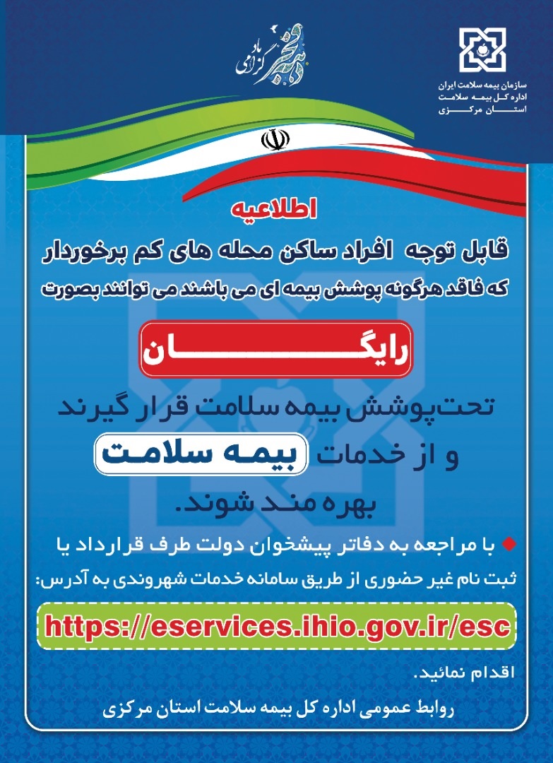طرح بیمه نمودن افراد فاقد پوشش بیمه ای در محله های کم برخوردار ۰۳ اسفند ۱۴۰۰ | ۱۲:۴۸ کد : ۲۴۱۷۷ اطلاعیه ارسال به دیگران نام شما ایمیل شما ایمیل دریافتکننده ارسال انصراف تعداد بازدید:۲۶۰۳۶