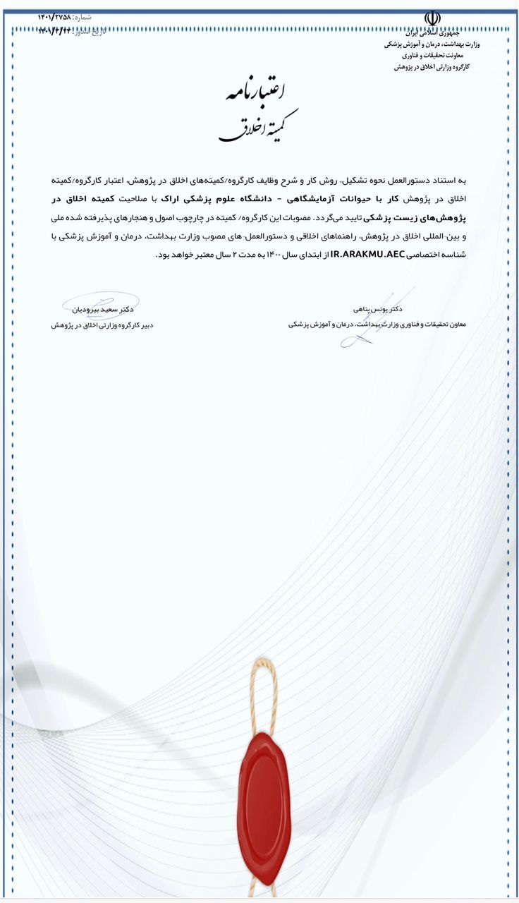 اخذ اعتبار نامه کمیته اخلاق در پژوهش کار با حیوانات آزمایشگاهی برای دانشگاه علوم پزشکی اراک ۰۱ تیر ۱۴۰۱ | ۰۷:۲۲ کد : ۲۷۲۴۶ اطلاعیه ارسال به دیگران نام شما ایمیل شما ایمیل دریافتکننده ارسال انصراف تعداد بازدید:۱۸۱۴۱