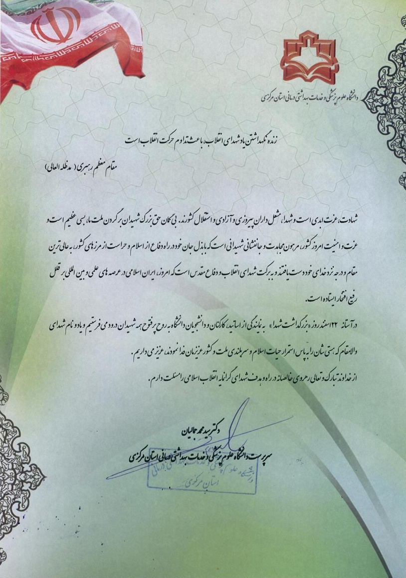 متن تقدیرنامه سرپرست دانشگاه برای بزرگداشت شهدا ۰۷ اسفند ۱۳۹۷ | ۱۳:۰۰ کد : ۳۰۱۸ اصلی ارسال به دیگران نام شما ایمیل شما ایمیل دریافتکننده ارسال انصراف تعداد بازدید:۴۷۱۹۷