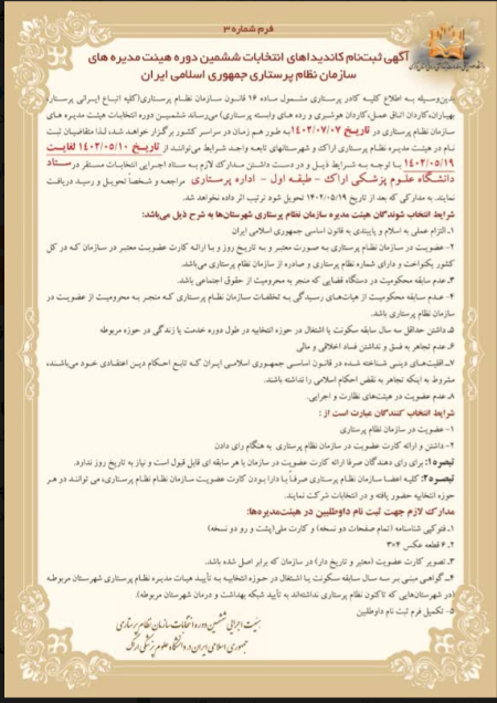 اطلاعیه ثبت نام کاندیداهای انتخابات ششمین دوره هیئت مدیره های سازمان نظام پرستاری ۰۷ مرداد ۱۴۰۲ | ۰۹:۲۲ کد : ۳۶۲۶۴ اطلاعیه ارسال به دیگران نام شما ایمیل شما ایمیل دریافتکننده ارسال انصراف تعداد بازدید:۱۶۸۰۵