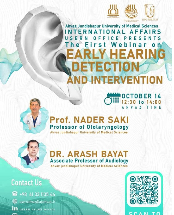 مدیریت امور بین الملل دانشگاه علوم پزشکی جندی شاپور اهواز با همکاری دفتر یوسرن در نظر دارد وبینارهایی به مناسبت روز جهانی قلب و روز جهانی ناشنوایان برگزار نماید. لذا از تمامی علاقمندان در کلیه دانشگاه های علوم پزشکی کشور دعوت به عمل می آید در رویدادهای مذکور شرکت نمایند. جزئیات برگزاری وبینارها به شرح ذیل حضورتان اعلام می گردد.