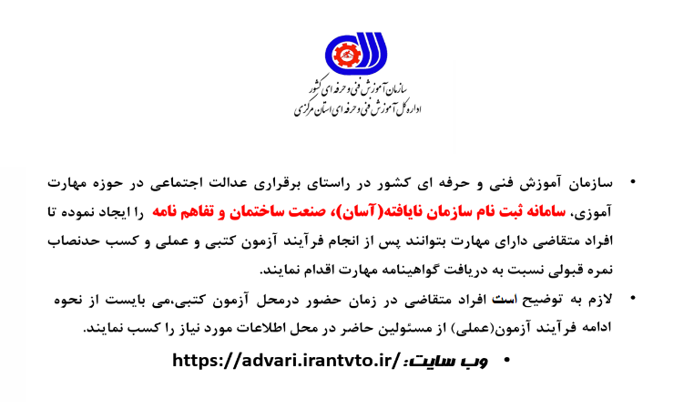 اداره کل آموزش فنی و حرفه ای استان مرکزی در راستای معرفی فعالیتهای سازمان مربوطه در زمینه ارائه آموزش های مهارتی و ماموریت های ذاتی این اداره در نظر دارد فعالیت های کلی صورت گرفته در مجموعه خویش را در قالب طرحی تحت عنوان " سه شنبه های مهارتی " به شرح ذیل انجام دهد.