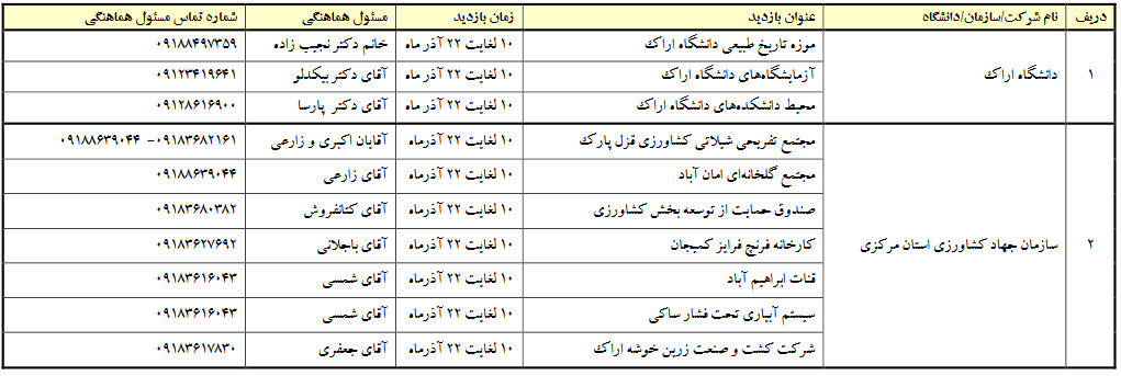 لیست مراکز و بخش های قابل بازدید در هفته پژوهش و فناوری استان مرکزی به شرح ذیل می باشد.