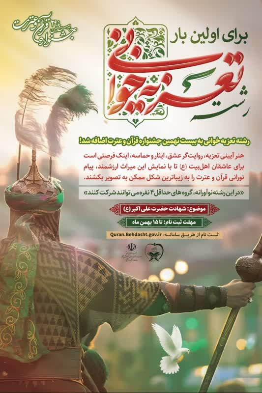در بیست و نهمین جشنواره قرآن و عترت، برای اولین بار رشته تعذیه خوانی با موضوع " شهادت حضرت علی اکبر (ع) " اضافه گردید.