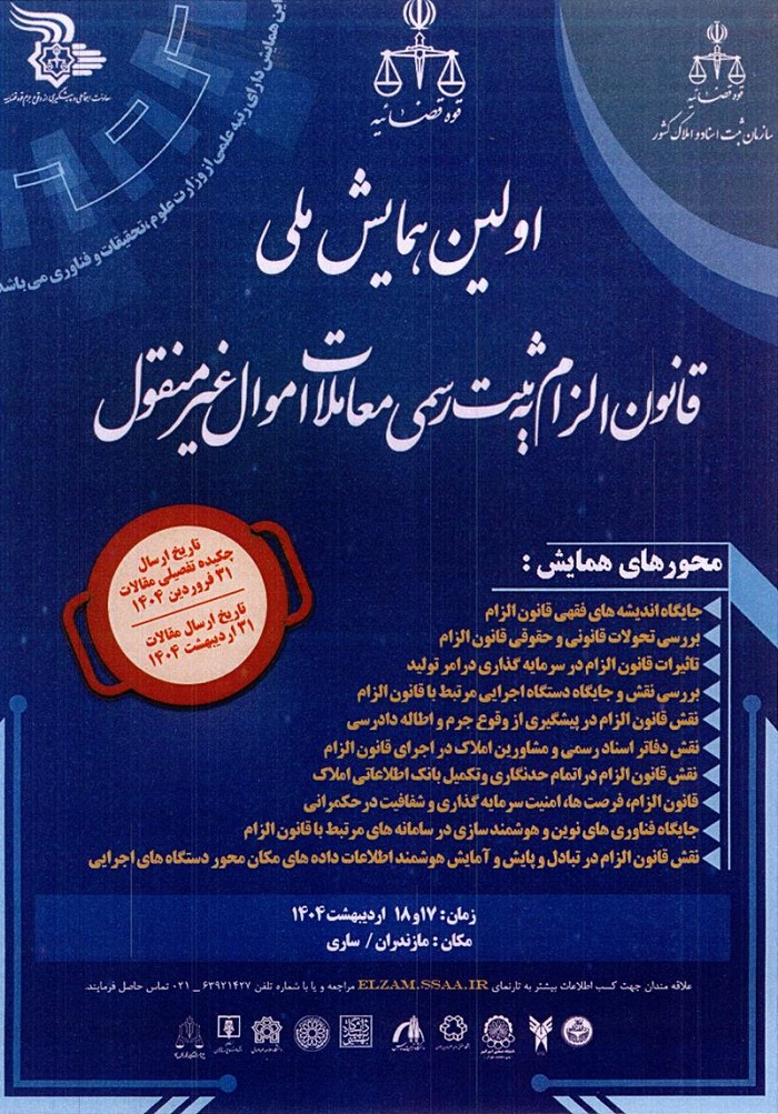 کلیدواژه‌ها: ﻫﻤﺎﯾﺶ ﻗﺎﻧﻮن اﻟﺰام ﺑﻪ ﺛﺒﺖ رﺳمی ﻣﻌﺎﻣﻼت اﻣﻮال ﻏﯿﺮ ﻣﻨﻘﻮل ثبت رسمی معاملات اموال غیر منقول