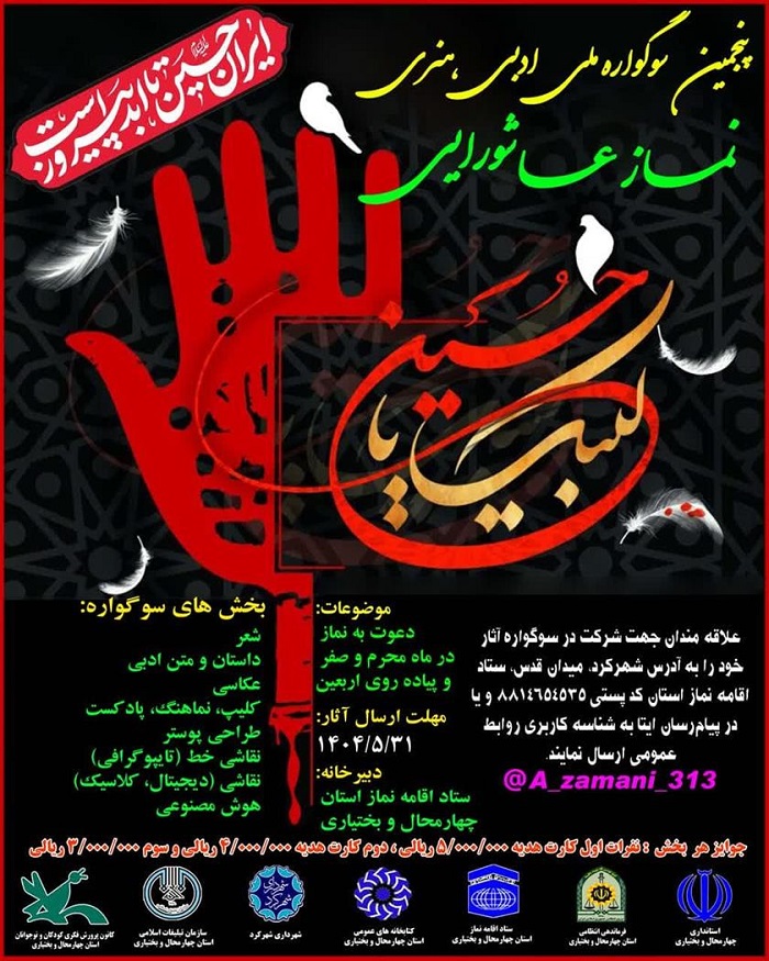 پنجمین سوگواری ملی ادبی، هنری نماز عاشورایی، به همت ستاد اقامه نماز استان چهارمحال بختیاری اجرا می گردد.