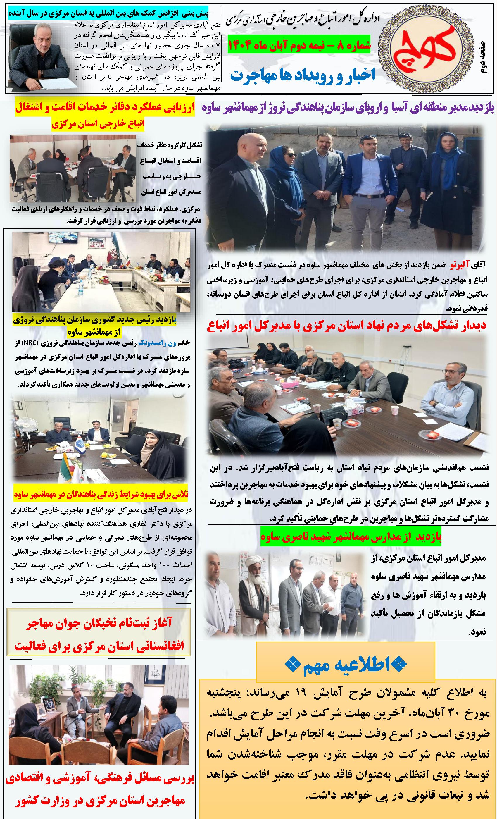 هشتمین شماره نشریه کوچ، توسط دفتر امور اتباع و مهاجرین خارجی استان مرکزی منتشر گردید.
