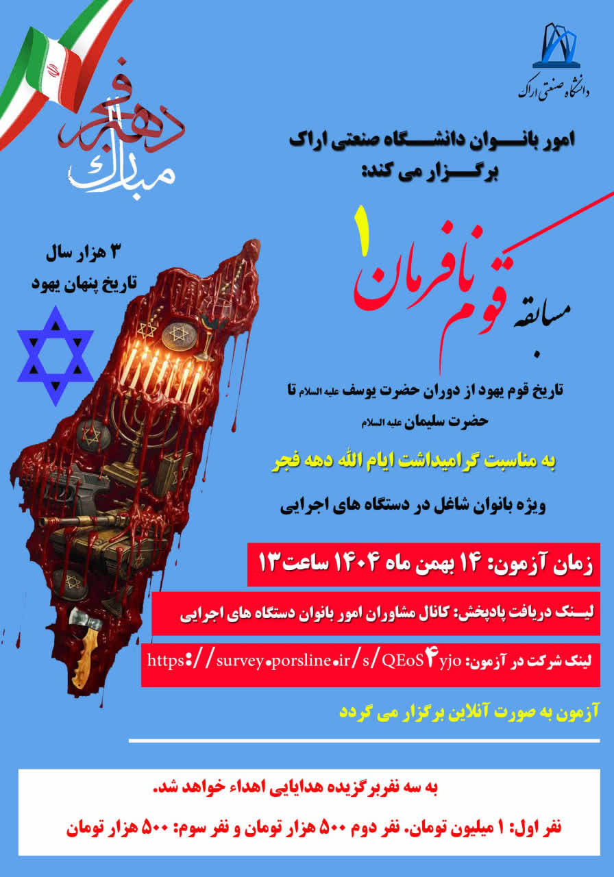 مسابقه قوم نافرمان ۰۸ بهمن ۱۴۰۴ | ۱۰:۳۹ کد : ۵۷۷۴۳ اطلاعیه ارسال به دیگران نام شما ایمیل شما ایمیل دریافتکننده ارسال انصراف تعداد بازدید:۴۶ برگزاری مسابقه قوم نافرمان، در ایام الله دهه فجر