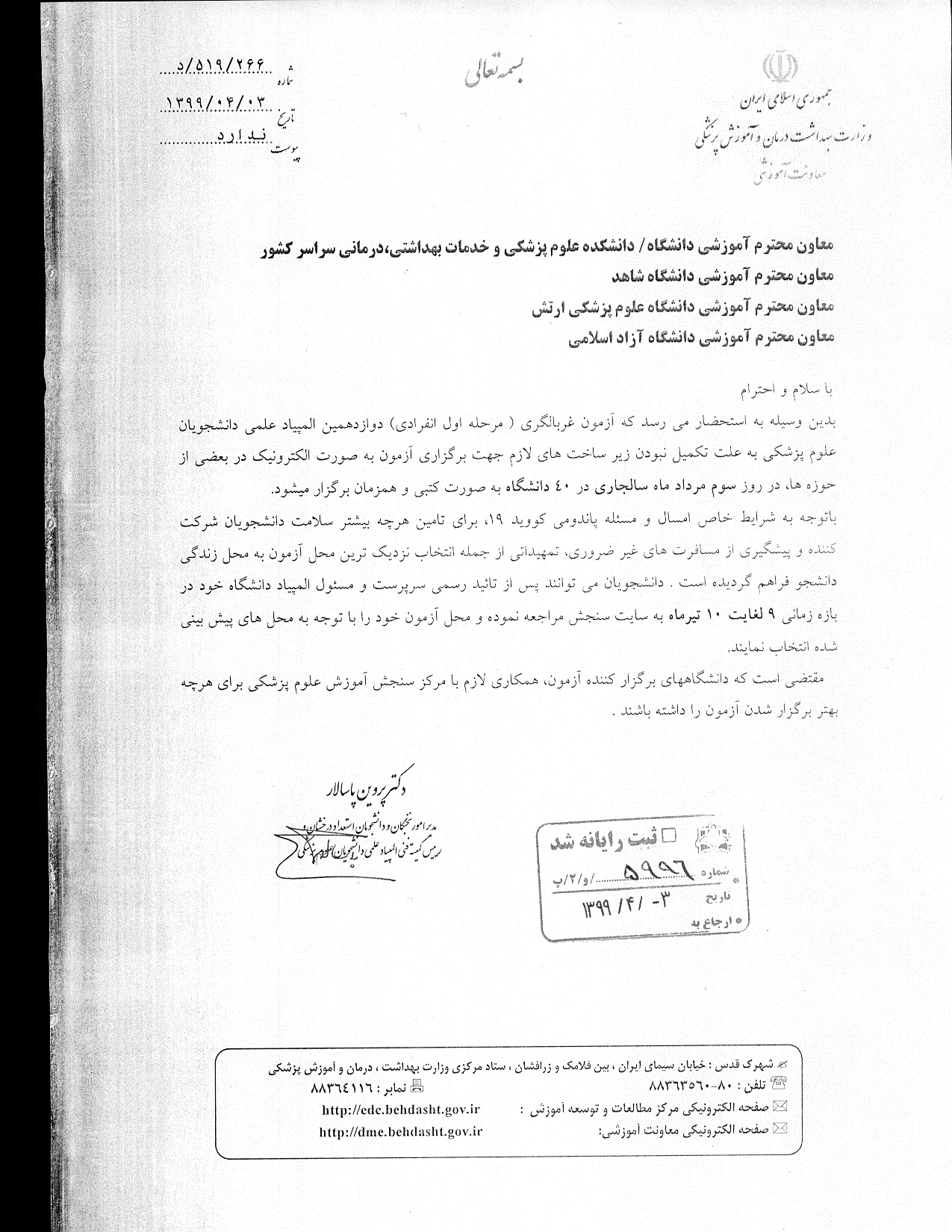 اطلاعیه محل برگزاری دوازدهمین المپیاد علمی دانشجویان دانشگاه های علوم پزشکی ۰۳ تیر ۱۳۹۹ | ۱۲:۲۸ کد : ۱۰۰۴۵ اخبار اصلی ارسال به دیگران نام شما ایمیل شما ایمیل دریافتکننده ارسال انصراف تعداد بازدید:۲۱۵۳