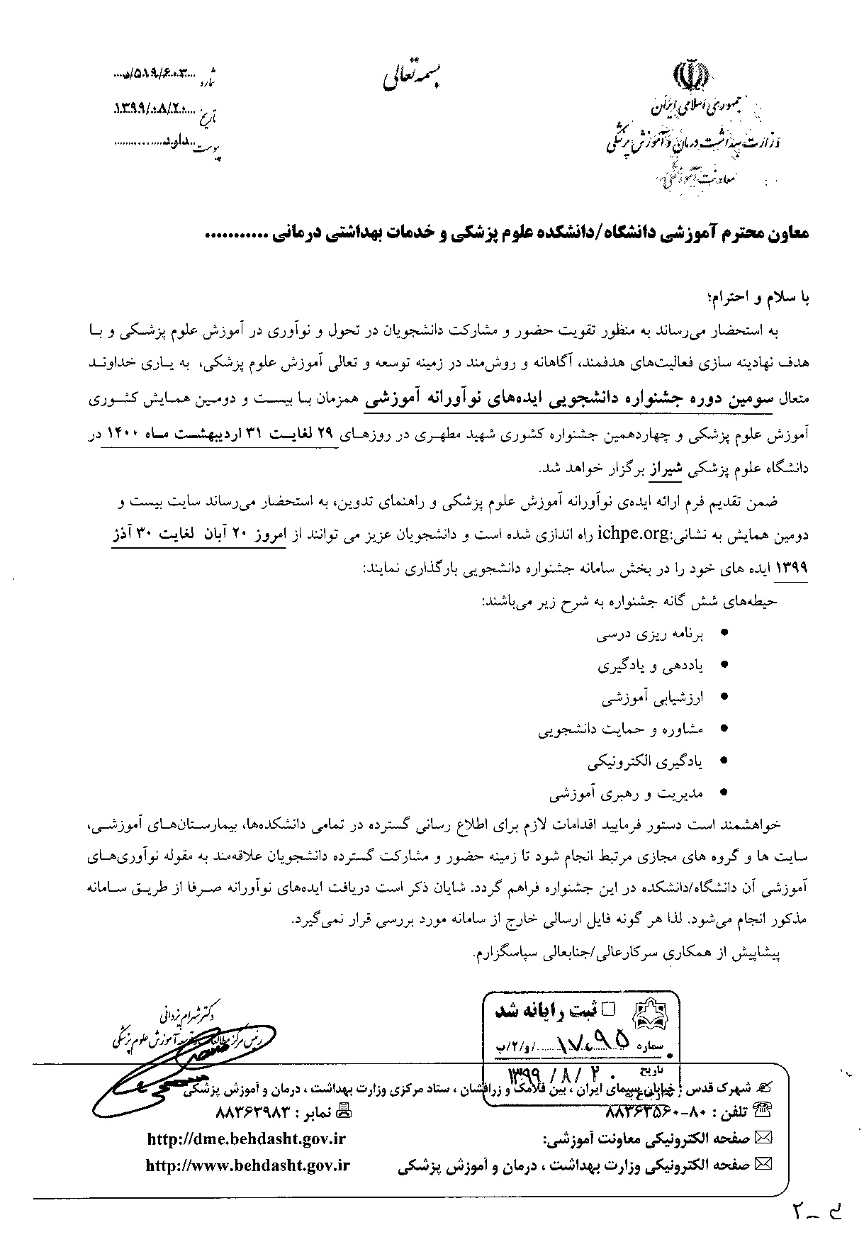 جشنواره ایده های نوآورانه دانشجویی ۲۷ آبان ۱۳۹۹ | ۱۲:۴۳ کد : ۱۳۳۵۹ اخبار اسلایدی اخبار اصلی ارسال به دیگران نام شما ایمیل شما ایمیل دریافتکننده ارسال انصراف تعداد بازدید:۲۱۵۷ جهت کسب اطلاعت بیشتر کلیک کنید.