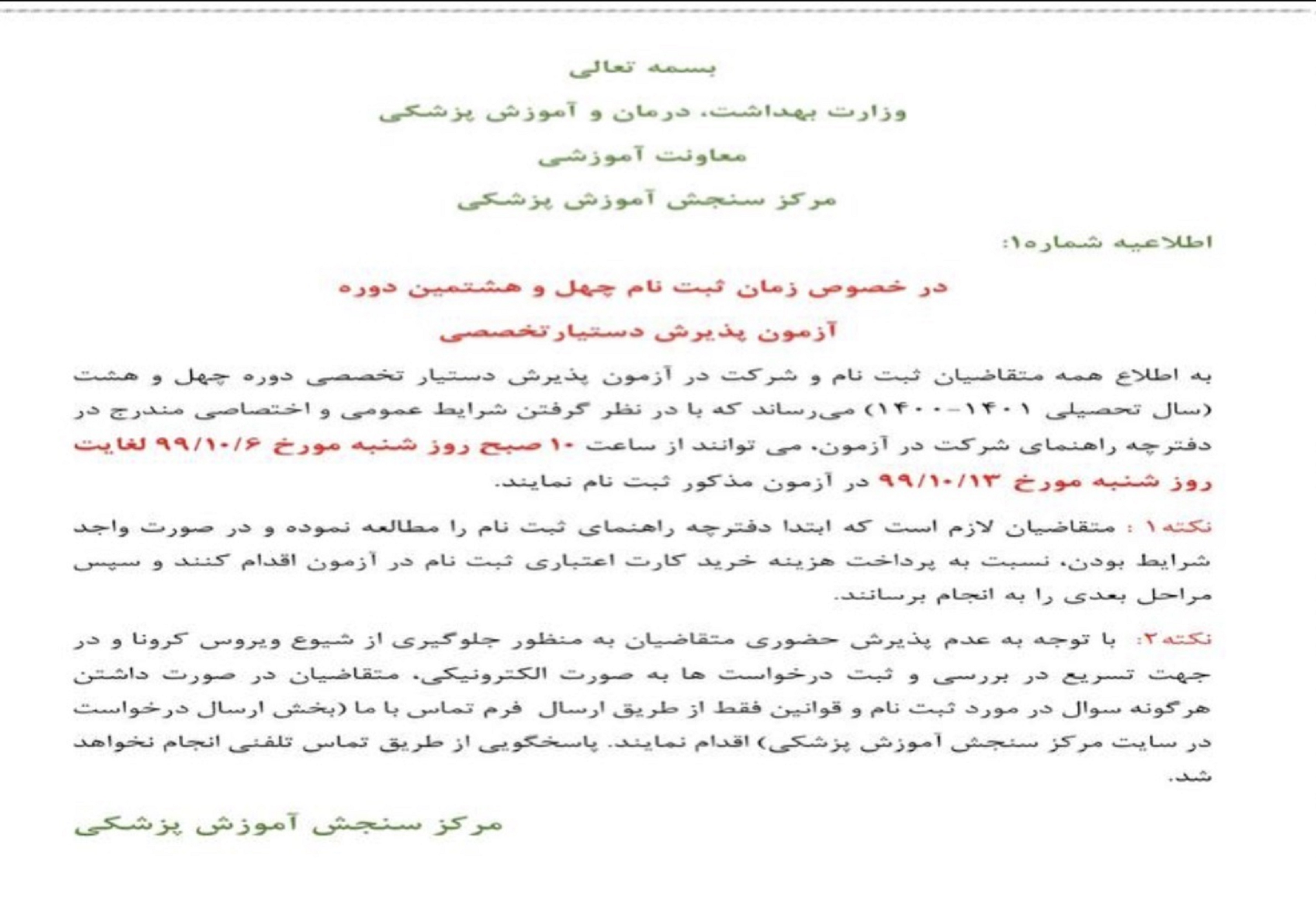 اطلاعیه سازمان سنجش آموزش پزشکی کشور ۱۳ دی ۱۳۹۹ | ۱۱:۳۵ کد : ۱۴۳۰۹ اخبار اسلایدی ارسال به دیگران نام شما ایمیل شما ایمیل دریافتکننده ارسال انصراف تعداد بازدید:۱۹۰۰
