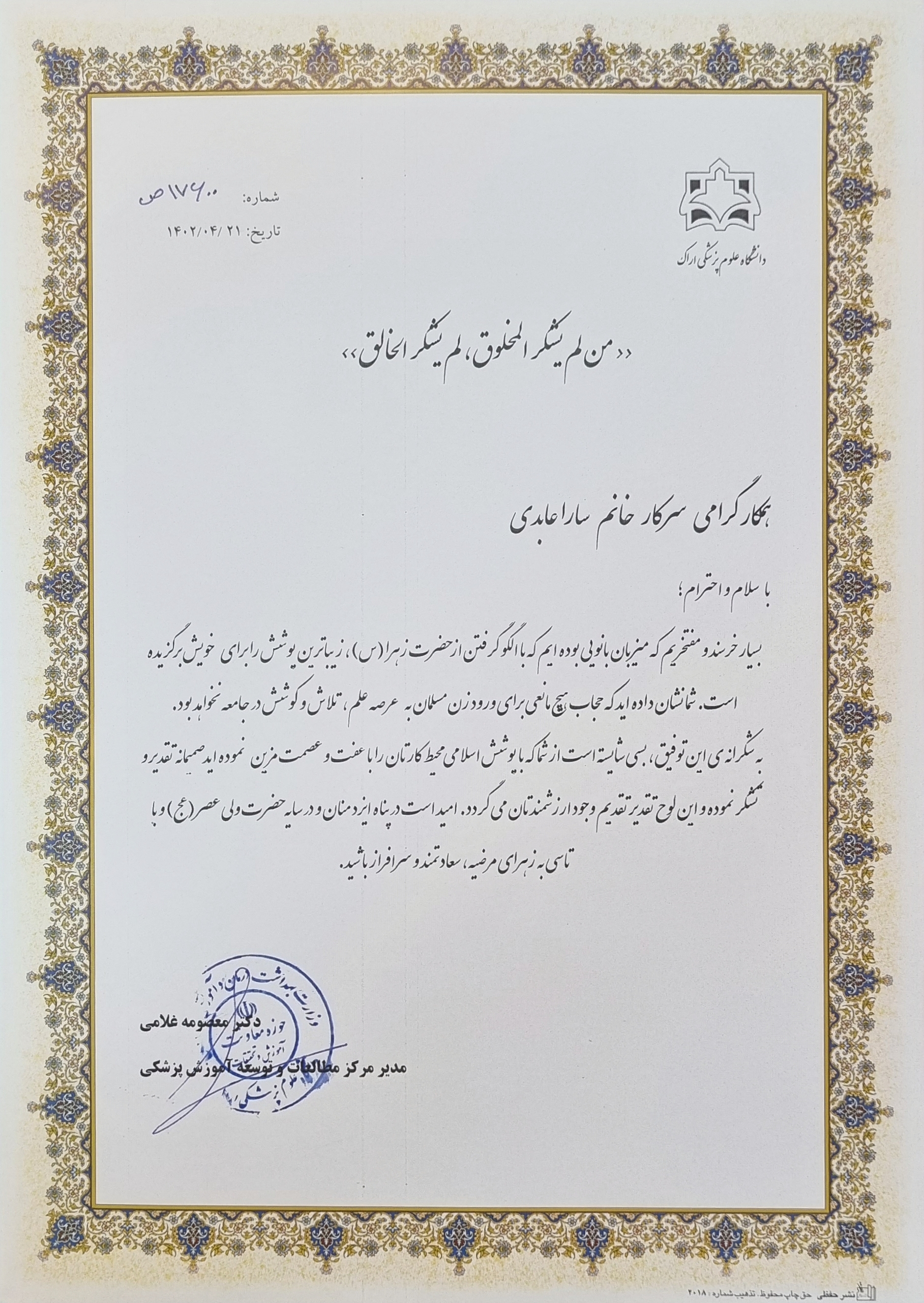 تقدیر از پیشگامان عرصه عفاف و حجاب در مرکز مطالعات و توسعه آموزش علوم پزشکی ۲۱ تیر ۱۴۰۲ | ۱۰:۲۴ کد : ۳۵۷۸۵ اخبار اسلایدی اخبار اصلی ارسال به دیگران نام شما ایمیل شما ایمیل دریافتکننده ارسال انصراف تعداد بازدید:۱۶۴۷