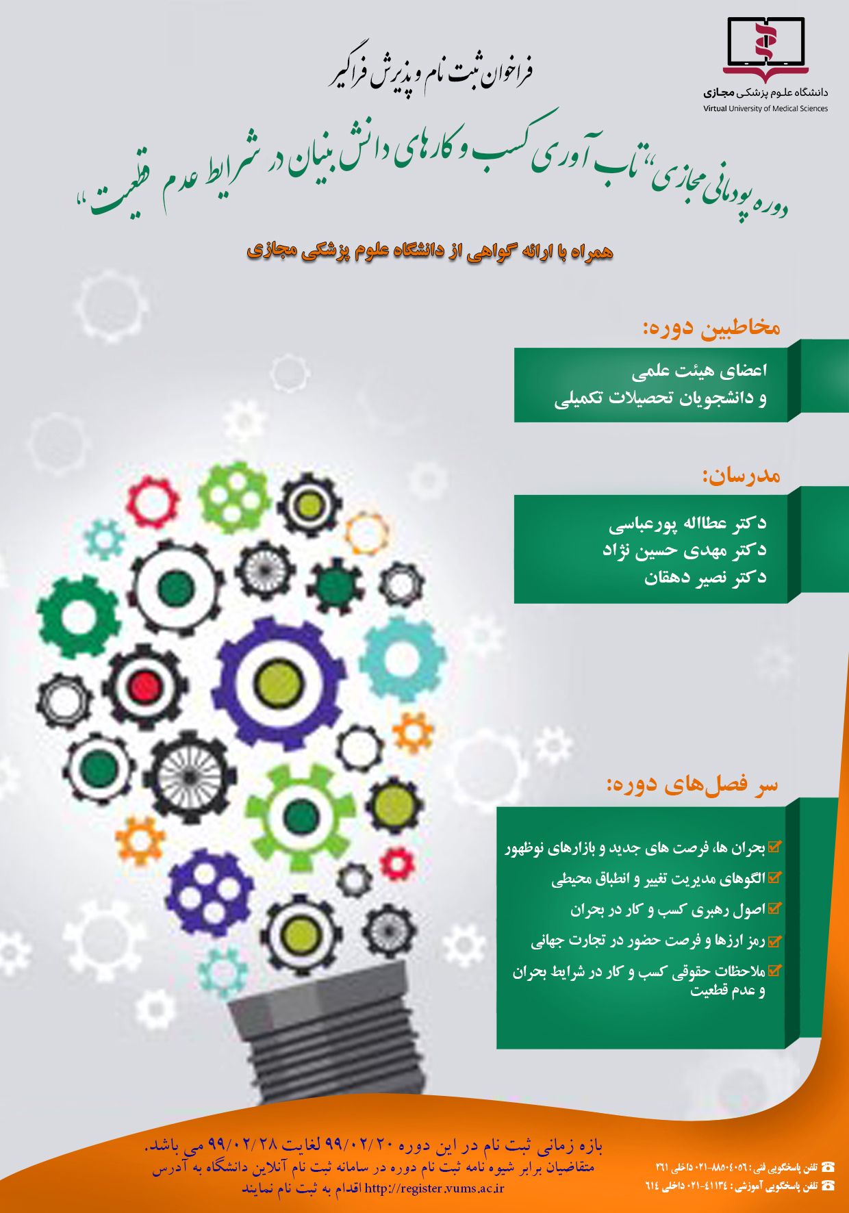 فراخوان ثبت نام و پذیرش فراگیر در دوره پودمانی تاب آوری کسب و کارهای دانش بنیان ۲۰ اردیبهشت ۱۳۹۹ | ۰۹:۰۷ کد : ۹۲۷۱ اخبار اصلی ارسال به دیگران نام شما ایمیل شما ایمیل دریافتکننده ارسال انصراف تعداد بازدید:۲۷۴۰